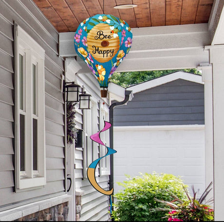 Happy Bee Hive Hot Air Balloon Wind Twister