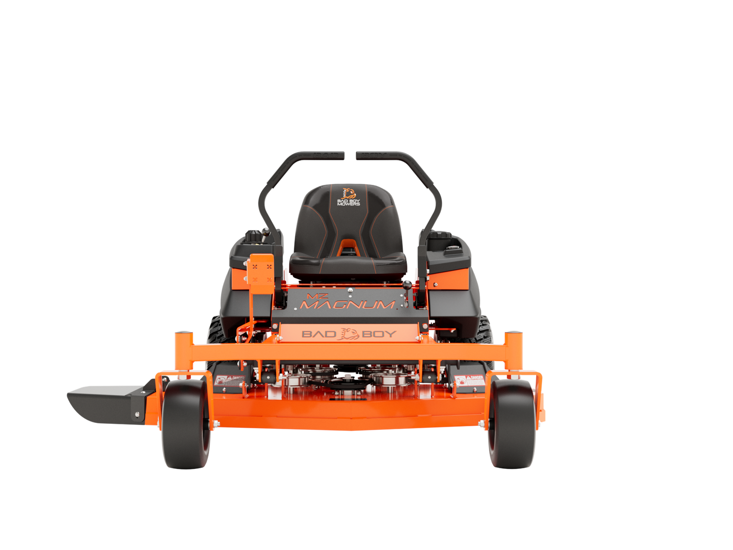 The MZ Magnum Zero-Turn Riding Lawn Mower is built right here in the USA, with all the toughness you'd expect from Bad Boy. That's because it's manufactured alongside its larger commercial cousins from quality Bad Boy steel at our Arkansas headquarters. And what's good for the big dogs is just as good for this smaller, residential mower. You get the same professional quality, the same zero-turn efficiency, and the same comfortable ride at an even more affordable price. And you don't have to sacrifice power or performance to do it.