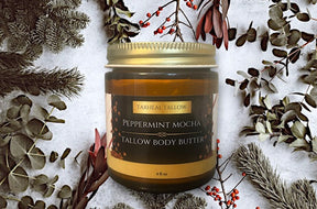Pamper your skin with the luxurious goodness of our Peppermint Mocha Tallow Body Butter. Made with 100% grass-fed beef tallow, cold-pressed jojoba oil, and an organic peppermint essential oil blend, this deeply nourishing formula delivers lasting hydration while leaving your skin irresistibly soft.