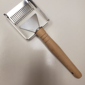 This essential tool for uncapping your honey frames is made of laser-cut & welded stainless steel and has a perfect grip wooden handle. It is especially helpful for scratching low spots on the comb without cutting too deep.