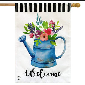 WELCOME WATERING CAN BURLAP House Flag is backordered and will ship as soon as it is back in stock.